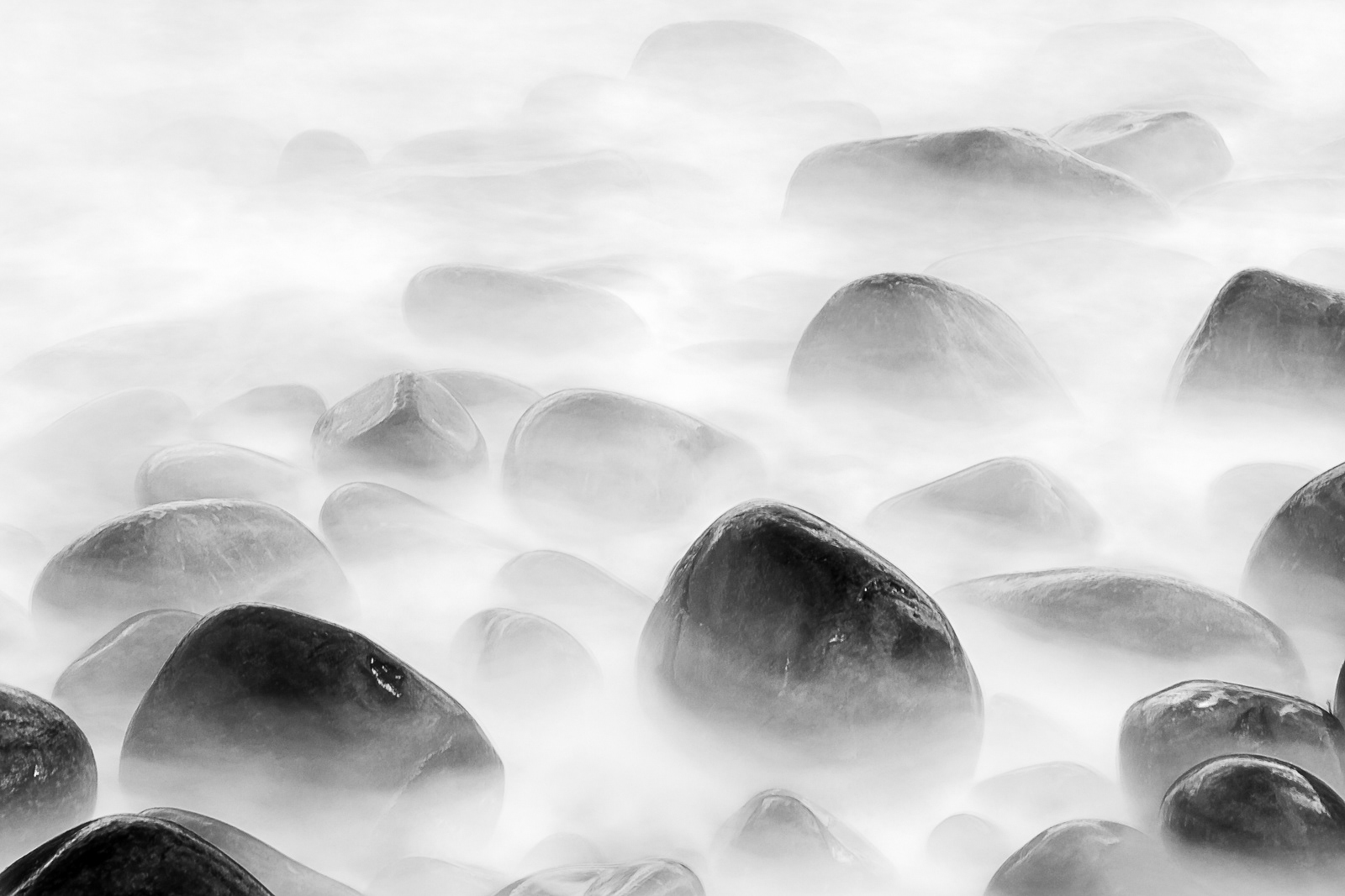 Rocks rise and fade like thoughts half-remembered, held briefly in the hush between waves.