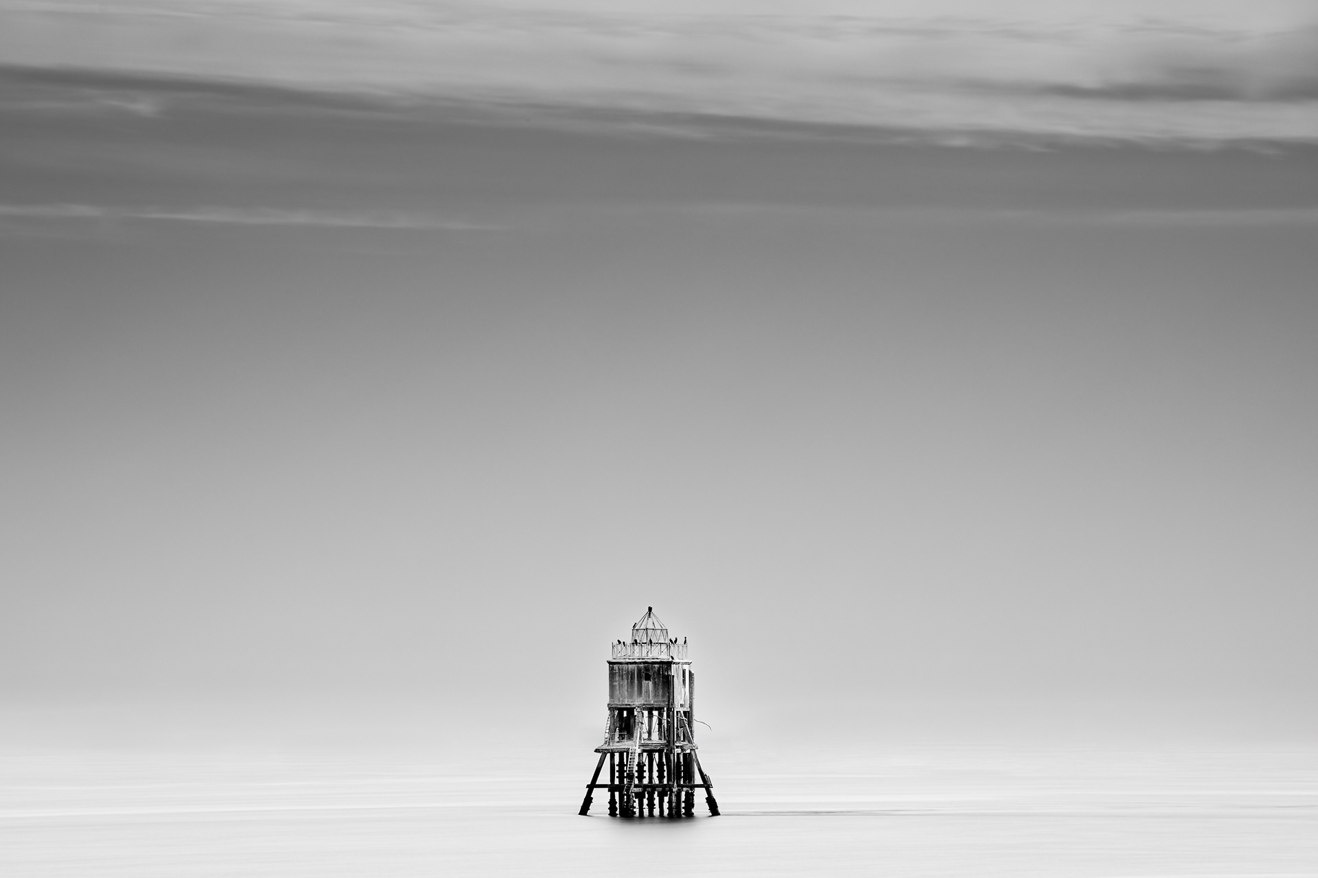 Here, emptiness becomes part of the geometry. The horizon dissolves, leaving the beacon alone in a spacious hush where time feels slowed and sound seems impossible. With nothing to compete for attention, its worn timbers and delicate symmetry reveal a different kind of strength: not the strength of utility, but the strength of simply continuing to exist.