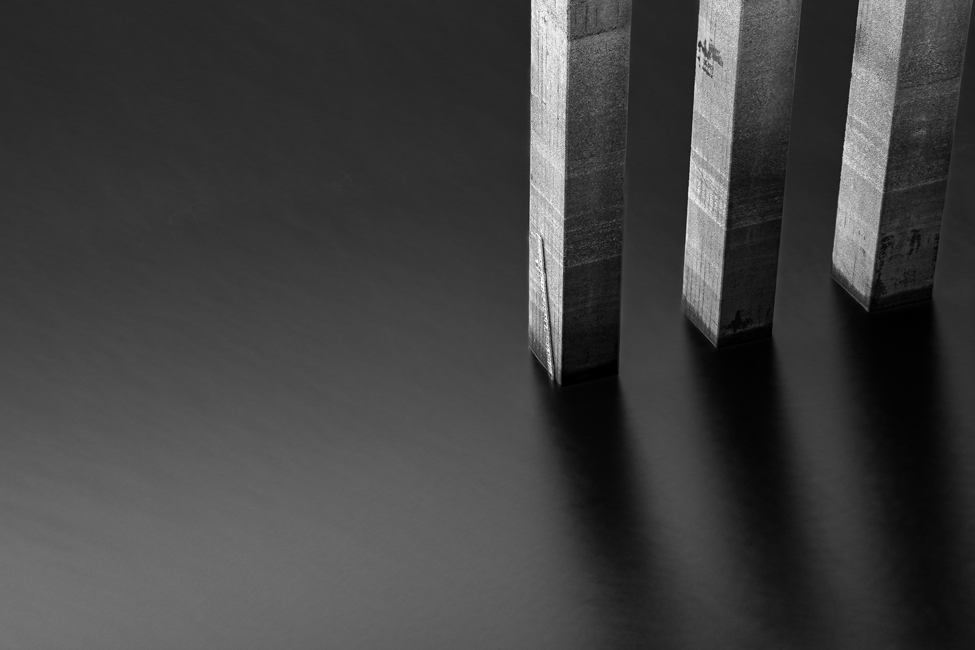 these pillars stand suspended between water and shadow —