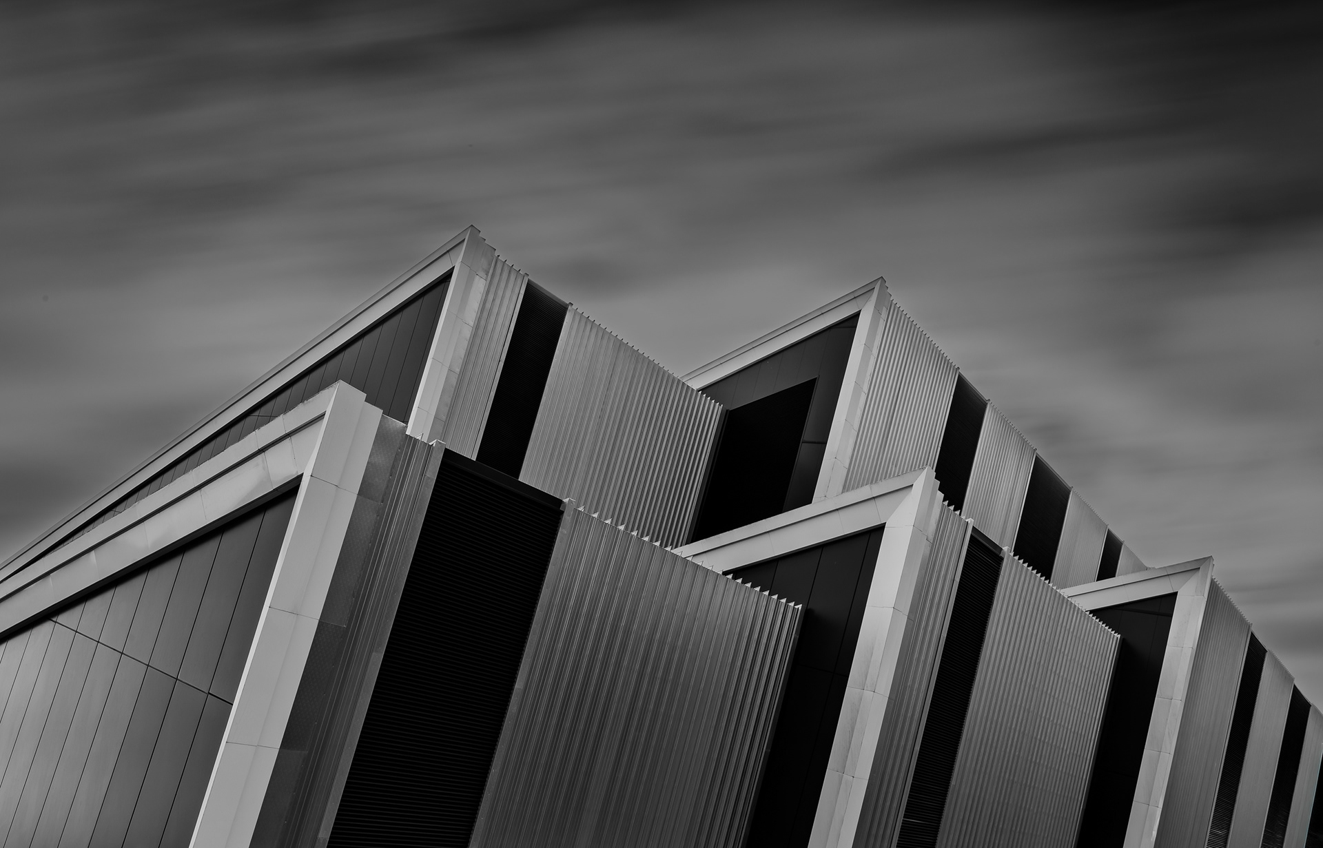 A study in rhythm and precision, “Symphony of Angles” explores how architecture can echo the cadence of a city. The building’s geometric planes rise like overlapping chords, each line catching the light in a different key. With motion softening the sky behind it, the structure feels both anchored and alive — a reminder that even in the built environment, there is music in the meeting of form, shadow, and air.